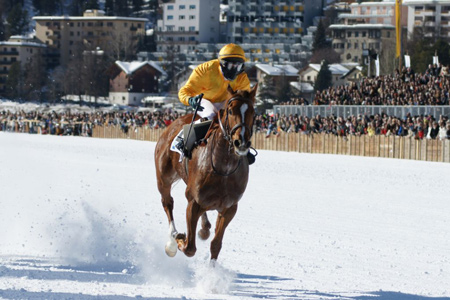 ![]() Bild links: Raneb und Markus Kolb im Zieleinlauf mit einem leichten Sieg vor der eindrücklichen Publikumskulisse in St. Moritz mit den 13'000 Zuschauern. Foto: www.scarletti.ch |