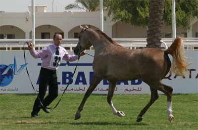 | Die Qualität der gezeigten Schaupferde war hoch und der Einfluss des ägyptischen Blutes der Gestüte Al Shaqab und Al Rayyan war im Typ der Pferde unverkennbar. Pferde, die auf der Schau in Qatar gewinnen, haben keine Mühe, auch in Europa auf Schauen wie Paris oder Aachen vorne zu stehen. |