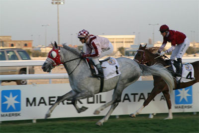 | Unter dem Patronat des Emirs von Qatar HH Sheikh Hamad Bin Khalifa Al-Thani wurde am 26. Februar auf der neuen Rennbahn "Al Rayyan Park" ein Renntag mit 6 Araber- und einem Vollblutrennen ausgetragen. Die Hauptereignisse bei den Vollblutarabern waren der "Qatar Breeders Cup", ein Grandprix über 1600 Meter für 70'000.- Qatari Rial und die "Qatar Equestrian Festival Trophy", ein Gruppe 1 Rennen über 1850 Meter für 60'000.- Qatari Rial. |