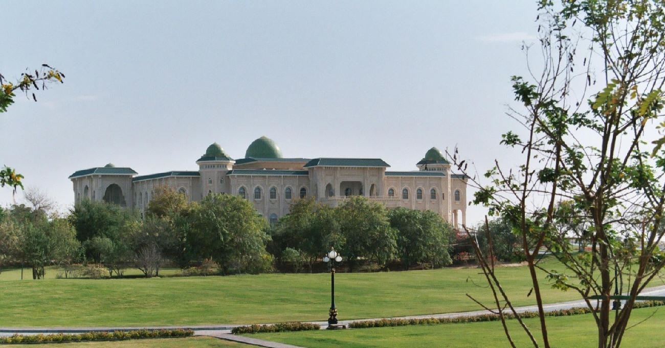 | Aus dem Nichts der Wüste traten wir in eine andere, paradiesisch anmutende, aber schon fast unnatürlich wirkende Welt von stilvoller Architektur, Kunst, und in allen Farben leuchtender Vegetation. Wir befanden uns in einer Palast- und Parkanlage in der Grösse von Versailles mit wunderschön angelegten Gärten und reich verzierten Springbrunnen, umgeben von unzähligen Strassen, links und rechts umrahmt von prunkvollen Strassenleuchtern, die in regelmässigen Abständen die Strasse säumen und abends wie ein Lichtermeer aus Tausend und einer Nacht in die klare Wüstennacht scheinen. | ||