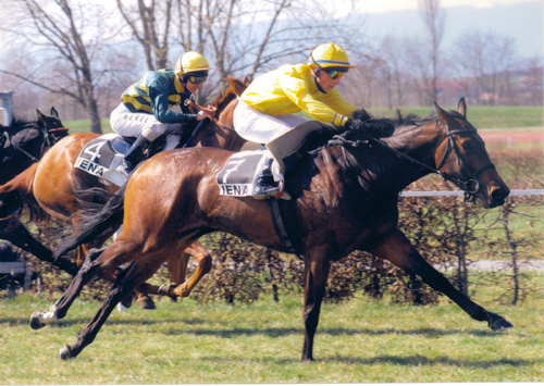 durchzusetzen vermochte. Nuit Crystalline, von Franziska Aeschbacher trainiert und Jockey Markus Kolb geritten, läuft unter den Farben von Stall Golden Arabians. |