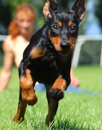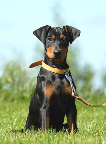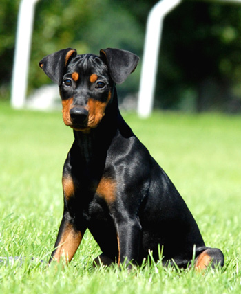 Rasse: Deutscher Pinscher, gute Wächter, geeignet für Pferde und Kinder