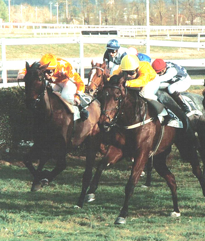 unter Jockey Frédéric Champagne von Anfang an in den ersten drei