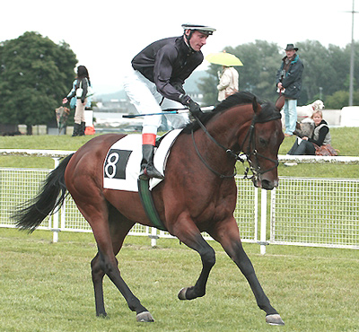 Vive l’etoile.links: Auenritter mit Jockey Raul Dygas beim Aufgalopp Foto: www.scarletti.ch |