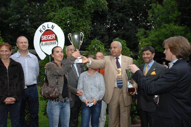 | „Solchen Speed sieht man in einem Araberrennen auch nicht alle Tage“ kommentierte die Sport-Welt in Deutschland den überzeugenden Sieg des 3-jährigen Vollblutaraberhengst Nil Ishan Ibn Al Sakbe. Gleich bei seinem Debüt legte der Hengst im Shadwell Cup, einem mit € 5'000.- dotierten, internationalen Rennen über 1'850 Meter für 3-jährige und ältere Pferde auf der Rennbahn in Köln seine Maidenschaft ab. |