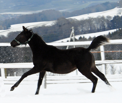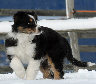 | unten: unsere Älteste, die 25-jährige Nil Najada (Ansata Halim Shah x Naya), Elitestute und Nile Stammstute | unten: unser Jüngster, der 8 Wochen alte Australian Shepherd "Help" zum ersten Mal im Schnee. |
