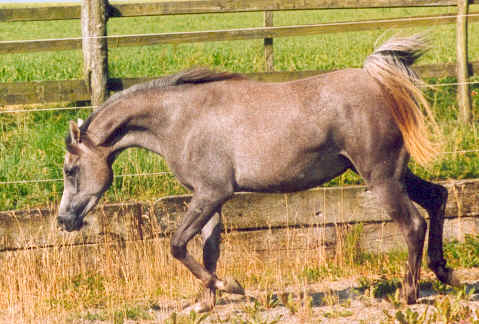 Reinägyptische Jungstute aus unserer Stammstute NIL NAJADA vom ägyptischen Spitzenhengst MAYDAN MADHEEN. Diese korrekte, im klassischen ägyptischen Typ stehende Stute zeigt viel Gang und arabische Ausstrahlung. | ||||||||||||||