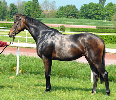 | Satin Lady (Übernahme Sissi) war in unserem Stall die grösste Hoffnung für 2008 und die Zukunft. Leider musste sie nach einem tragischen Unfall in der Stutenklassik, dem Prix de Diane, wo sie sich einen Trümmerbruch im Fesselbein zuzog, eingeschläfert werden. | |
