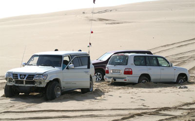 | Nicht nur Pferde und Reiter mussten frühzeitig aufgeben. Manch einer blieb auch mit seinem Jeep im heimtückischen Wüstensand stecken. Aber alle kamen wir heil ans Ziel, etwas ausgebrannt von einem langen und eindrücklichen Tag in der Wüste. |