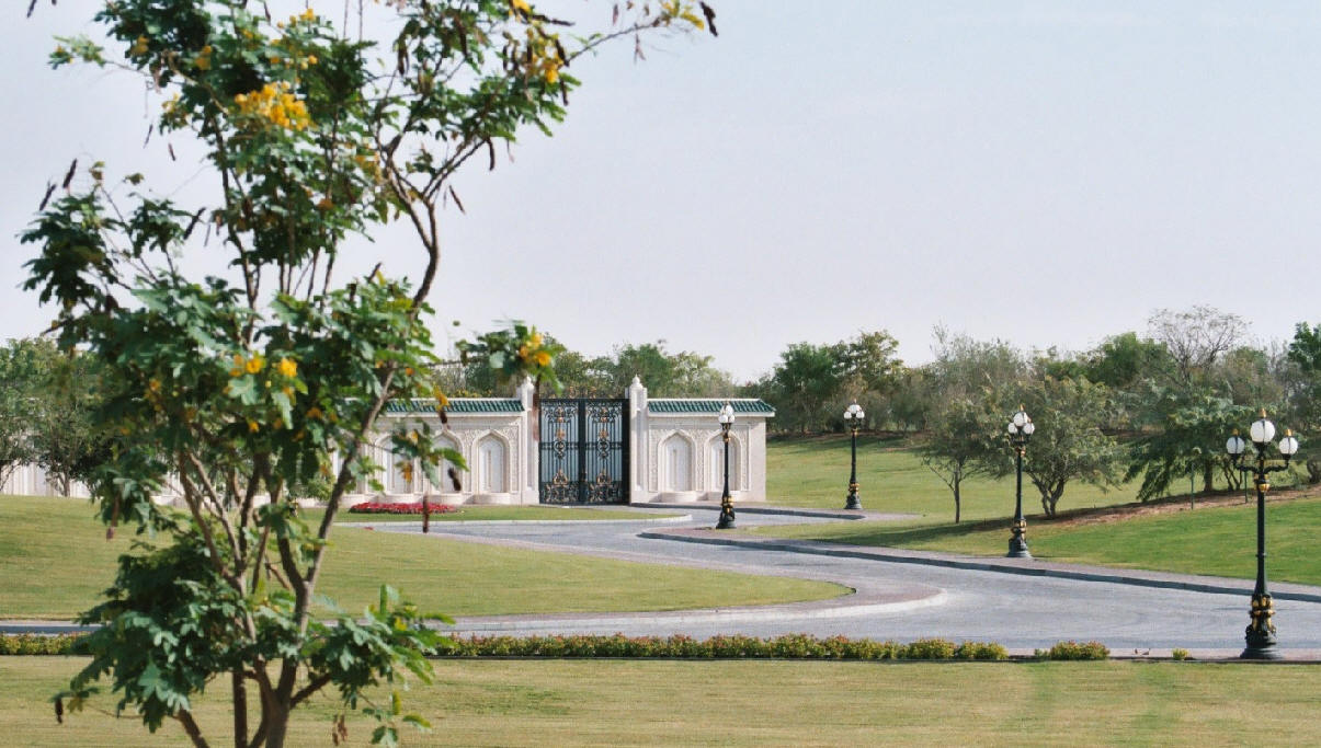 | Aus dem Nichts der Wüste traten wir in eine andere, paradiesisch anmutende, aber schon fast unnatürlich wirkende Welt von stilvoller Architektur, Kunst, und in allen Farben leuchtender Vegetation. Wir befanden uns in einer Palast- und Parkanlage in der Grösse von Versailles mit wunderschön angelegten Gärten und reich verzierten Springbrunnen, umgeben von unzähligen Strassen, links und rechts umrahmt von prunkvollen Strassenleuchtern, die in regelmässigen Abständen die Strasse säumen und abends wie ein Lichtermeer aus Tausend und einer Nacht in die klare Wüstennacht scheinen. | ||