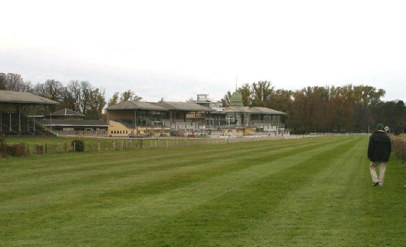 | Nachdem wir die Bahn einmal abgelaufen hatten und feststellten, dass diese in einem hervorragenden Zustand mit guter Grasnarbe und ohne Löcher war, gaben wir auf dem Rennsekretariat unsere Rennfarben und den Pass von Prinzli ab. Es war jetzt langsam wieder Zeit, sich um "Prinzli" zu kümmern, der schon wieder nach Kraftfutter schrie. |