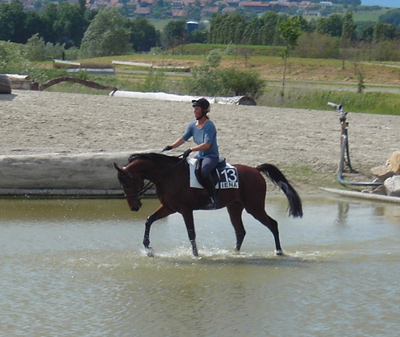 hohe Rittigkeit verfügen und auch seriös unter dem Sattel ausgebildet sind.Auch bei Sportreiter/innen, die Endurance Pferde suchen, ist ein Umdenken festzustellen. links: Verkaufspferd Nabab. 4-jähriger Wallach aus französischen Leistungslinien unter dem Sattel von Fränzi Aeschbacher |