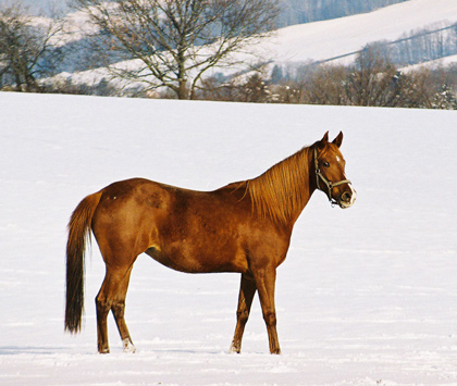 kalten Winter im Schnee bei Nile Arabians. Nach einer langen und erfolgreichen