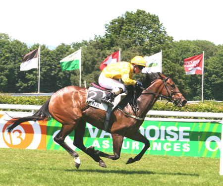 | Überlegen gewinnt Nuit Crystalline am 11. Juni in Avenches den "Prix des Peupliers", ein Sprintrennen für 4-jährige und ältere Vollblüter. |