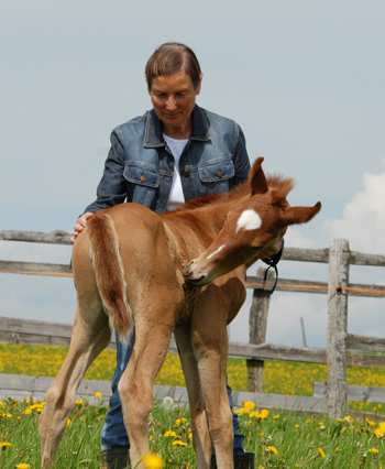 ![]() Ein hohes Selbstbewusstsein früh im Leben ist manchmal schon die halbe Miete. Nun wünschen wir allen eine unvergessliche Zeit mit ihren Fohlen und hoffen auf einen guten Jahrgang. Rita, Fränzi und Urs Aeschbacher |