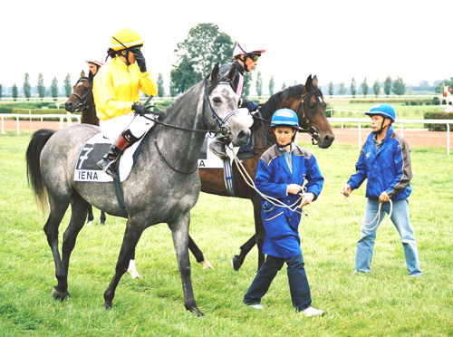 Oben rechts Nil Bedouin und links der aus Polen angereiste Hengst Eregos (Laheeb x Erotomanka), der auf den polnischen Rennbahnen eine beachtliche Leistungsbilanz auszuweisen hat. |