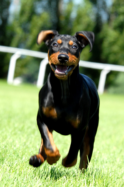 Rasse: Deutscher Pinscher, gute Wächter, geeignet für Pferde und Kinder