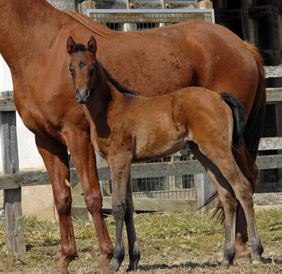 | Das am 22. Februar geborene DAHESS Fohlen hat sich in seinen ersten drei Wochen gut entwickelt und kann im Aussehen seinen Vater DAHESS, 28-facher Rennsieger, nicht verleugnen. Seine stolze tunesische Mutter KAHLOUCHA, 5-fache Rennsiegerin, lässt die Kleine bereits an den Hafer und ans Heu. | |