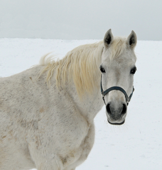 | unten: unsere Älteste, die 25-jährige Nil Najada (Ansata Halim Shah x Naya), Elitestute und Nile Stammstute | unten: unser Jüngster, der 8 Wochen alte Australian Shepherd "Help" zum ersten Mal im Schnee. |