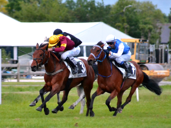 Bild: KAMUN DU NIL innen an den Rails im Finish des Prix Akbar in Dax |