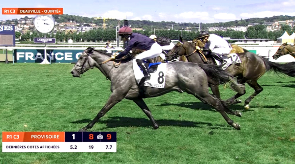 | Bild: TOPY'SIM (No. 8) mit Lea Bails am Zielpfosten von Deauville. | |