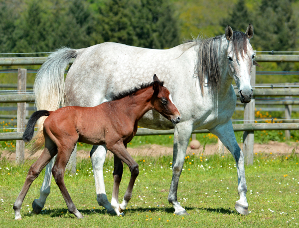 | Bild oben: Nil Farah Diba im Alter von 5 Jahren nach der Geburt ihres ersten Fohlens Alibaba Du Nil von Mister Ginoux, Foto Nile Arabians | ||||||||||||||||||||||||||||||