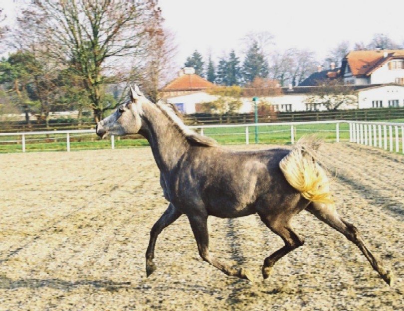 Reinägyptische Jungstute aus unserer Stammstute NIL NAJADA vom ägyptischen Spitzenhengst MAYDAN MADHEEN. Diese korrekte, im klassischen ägyptischen Typ stehende Stute zeigt viel Gang und arabische Ausstrahlung. | ||||||||||||||
